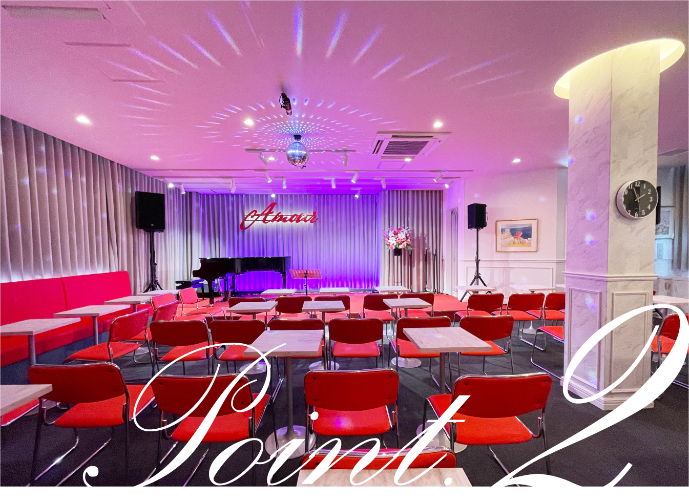 ソロコンサート、リサイタル、発表会、選手権大会、レッスン、結婚式・同窓会の二次会にと、多目的に使っていただけます。